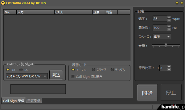 とくに「CW MANIA」の方は過去の「CQ WW DX CONTEST」のデータを基に、練習モードを「ランダム」にして再生すると、コールサインがランダムに再生されるのはもちろん、実際の通信のように再生される信号のトーンも変わるというすぐれものだ。