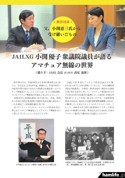 一般社団法人 日本アマチュア無線連盟(JARL)は2019年12月26日、年4回刊行している機関誌「JARL NEWS」の電子ブック版「電子版JARL NEWS」2020年冬号の公開を開始した。カラーページでは、「新春対談 JA1LXG小渕優子 衆議院議員が語るアマチュア無線の世界」と題して、JG1KTC 髙尾義則JARL会長が聞き手となり、アマチュア無線家でJARL会員でもある小渕衆議院議員へのインタビュー記事を掲載。そのほか、アマチュア無線ライフに役立つ情報が満載の「Radio JARL.com(ラジオ・ジャール・ドット・コム)」の聞き方や、JARL会員コミュニケーションサイト「JARL.COM(ジャール・ドット コム)」の活用法などを紹介するなど、盛りだくさんの内容となっている。