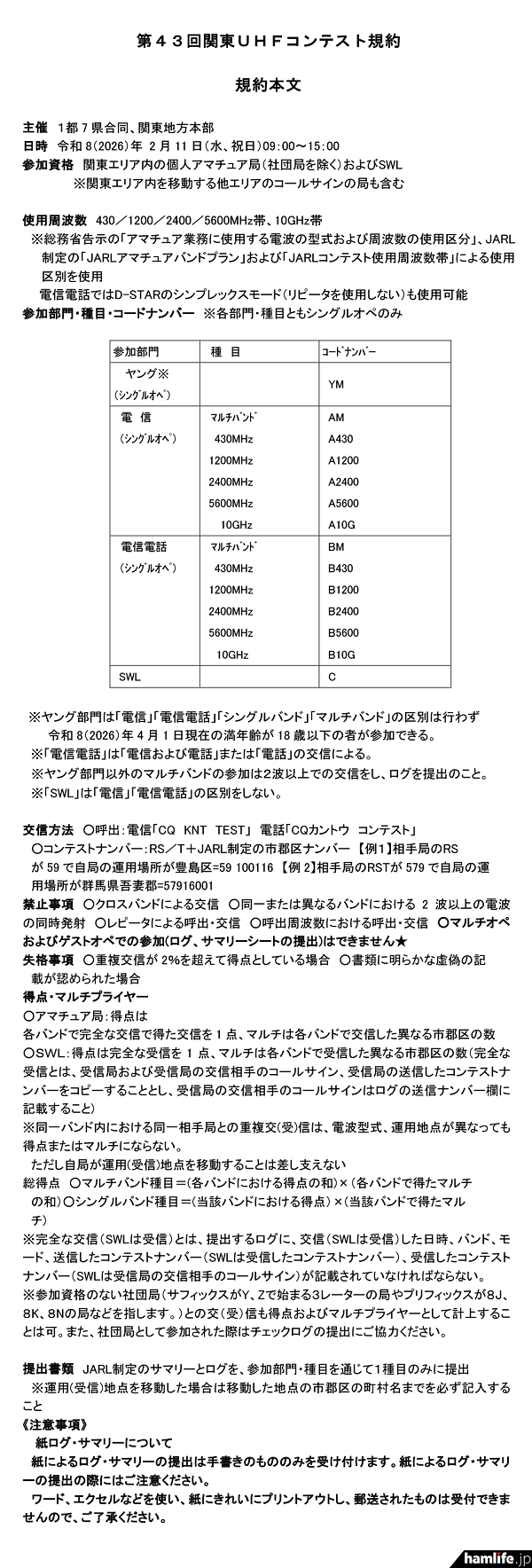 ・第43回 関東UHFコンテストの規約(PDF形式)