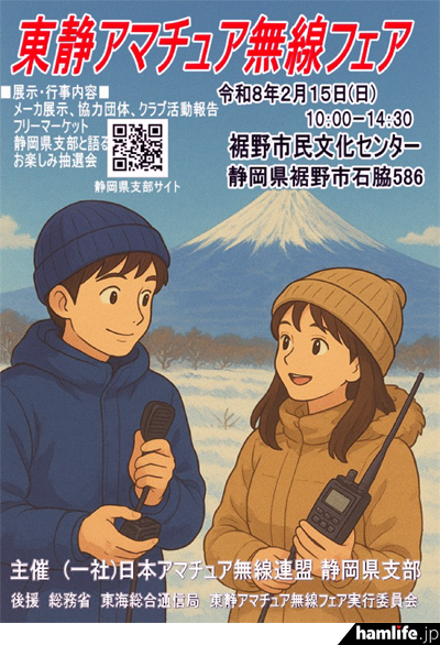 一般社団法人 日本アマチュア無線連盟(JARL)静岡県支部は、2026年2月15日(日)に裾野市の裾野市民文化センターで「静岡県支部東部合同ミーティング(東静アマチュア無線フェア)」を開催する。詳細は同支部のWebサイトで下記のように発表されている。