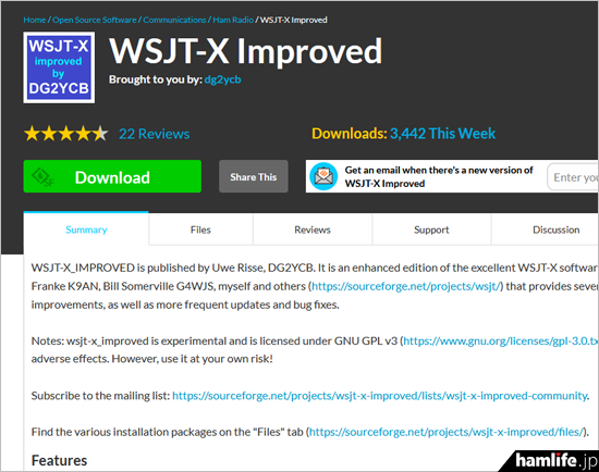 愛用者が多い「WSJT-X Improved」のダウンロードページ
