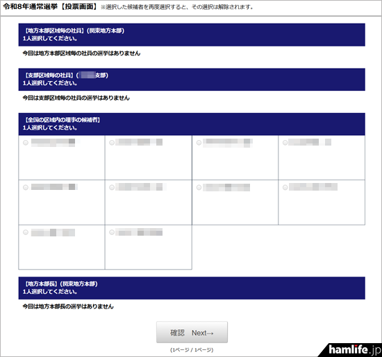 Web投票の画面例(関東地方本部の有権者の場合)